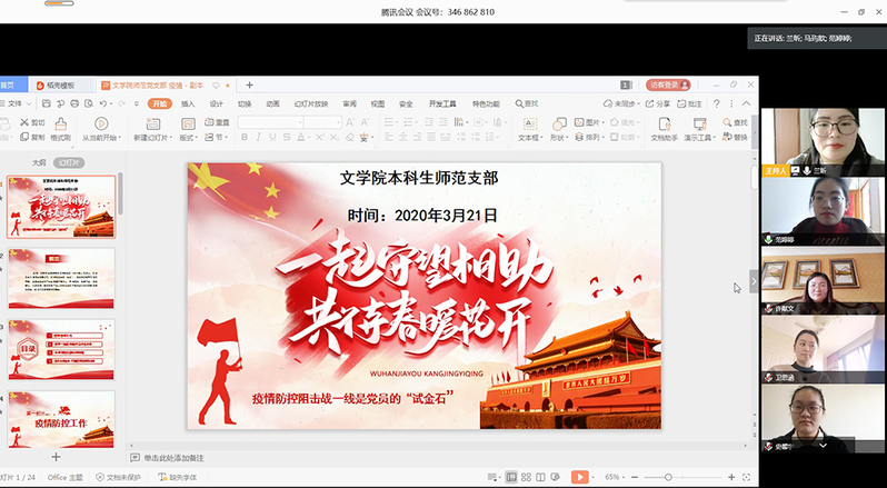 3月21日上午,365英国上市公司在线本科生师范党支部利用腾讯会议网络平台组织开展“一起守望相助,共待春暖花开”暨“疫情防控思政大课”感悟分享线上主题党日活动。