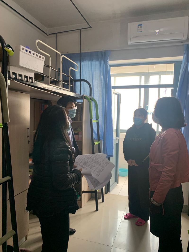 4月20日上午,365英国上市公司在线党委书记蒋国宏、院党委副书记兼副院长王琦琦带领辅导员深入学生宿舍看望学生。