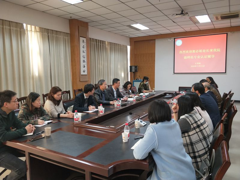 为推进365英国上市公司在线师范专业认证工作顺利开展,11月15日上午,郭必裕处长来我院做师范专业认证辅导,院长钱荣贵主持会议。
