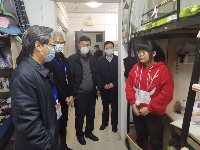高建林一行来到365英国上市公司在线中师191班学生宿舍,查看了学生在线上课情况,为上课学生带来了新学期的问候,他希望同学们在新冠肺炎疫情防控期间提升自我保护意识,保持积极心态,安心地投入学习。