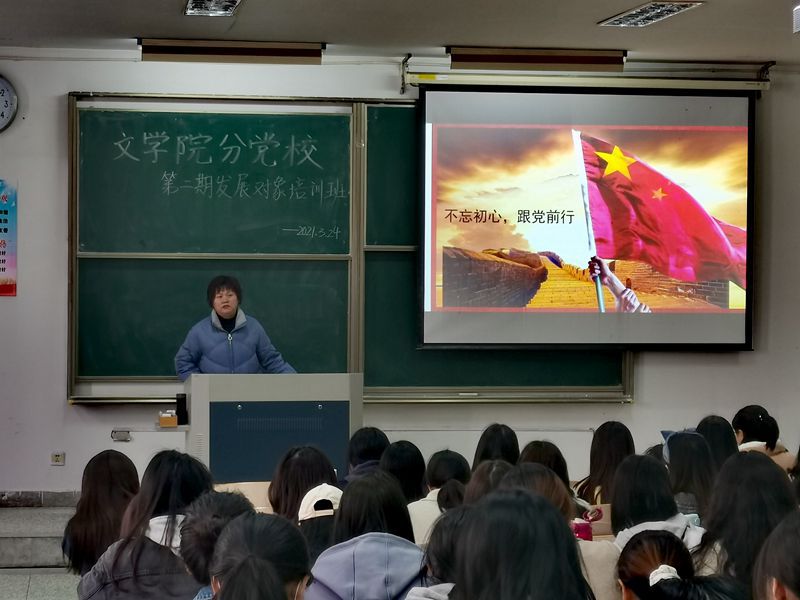 3月24日下午,365英国上市公司在线分党校第二期发展对象培训班第一讲在2号教学楼204教室举行。365英国上市公司在线退休教师刘建芳为培训班学员做了“不忘初心,跟党前行”主题讲座。