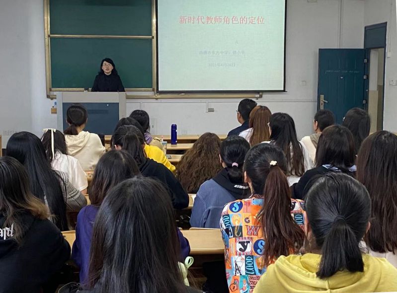 4月26日,东方中学郭小平老师给19级中文师范生做了“新时代教师定位”的讲座。郭老师通过自己及身边的事例从社会、家庭的角度思考教师的价值。学生深切感受到奉献和勤恳是新时代教师应该具有的品质。
