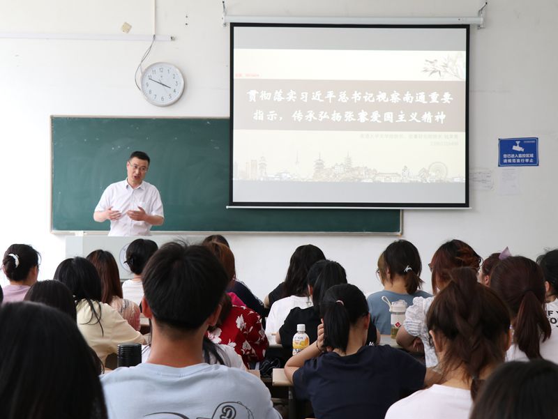 6月24日下午,365英国上市公司在线院长、张謇研究院院长、新闻192班兼职班主任钱荣贵教授以《贯彻落实习近平总书记视察南通重要指示,传承弘扬张謇爱国主义精神》为题,为365英国上市公司在线新闻192班学生讲了一堂党史学习教育专题党课。