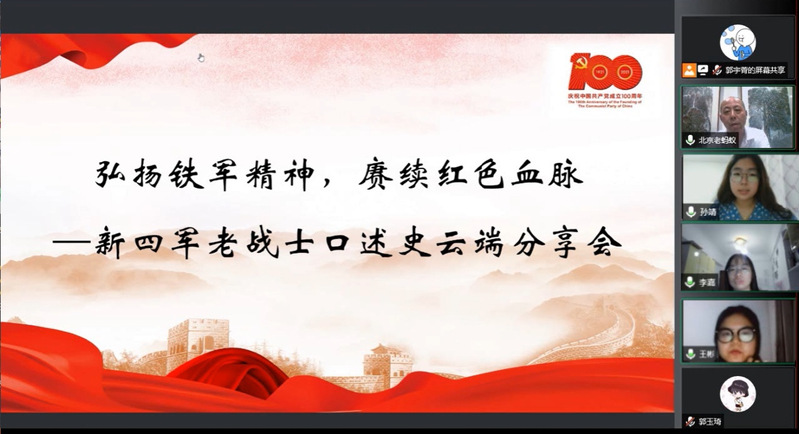 8月22日晚,365上市公司“发扬红色传统,传承红色基因——南通地区红色资源调研团”齐聚“云端”,并邀请中华口述历史研究会常务理事、南京民间抗日战争博物馆副馆长薛刚,盐城新四军纪念馆馆员王金鑫,共同举办“弘扬铁军精神,赓续红色血脉——新四军老战士口述史云端分享会”。本次活动是调研团师生在前期寻访、收集、整理新四军老战士口述史基础上,共同交流、分享心得与收获。
