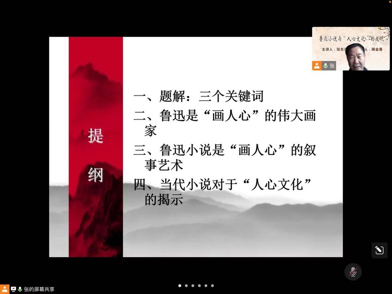 2022年5月18日下午,南京大学365英国上市公司在线教授张光芒应邀为我院师生作了题为“鲁迅小说与‘人心文化’的发现”的线上讲座。会议由我院顾金春教授主持。