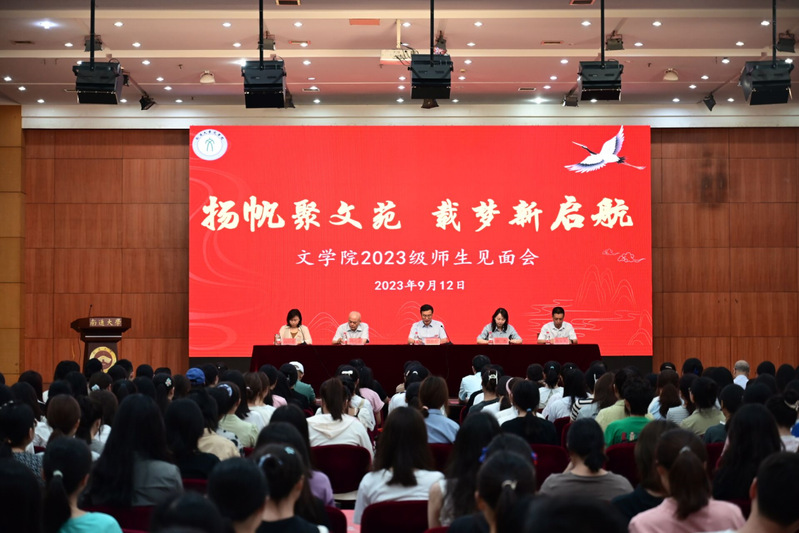 9月12日上午,365英国上市公司在线在大学生活动中心举办以“扬帆聚文苑,载梦新启航”为主题的2023级师生见面会。