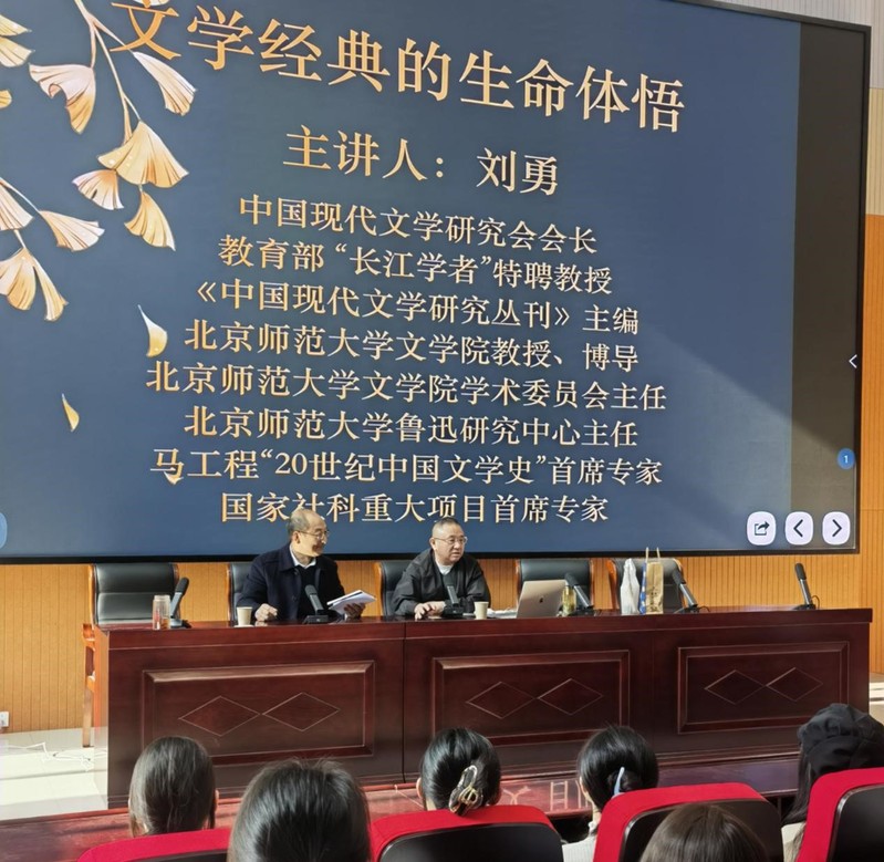 3月31日下午,中国现代文学研究会会长、教育部“长江学者”特聘教授、北京师范大学刘勇教授,应邀做客我校“精进论坛”,为师生做题为“文学经典的生命体悟”的学术讲座。