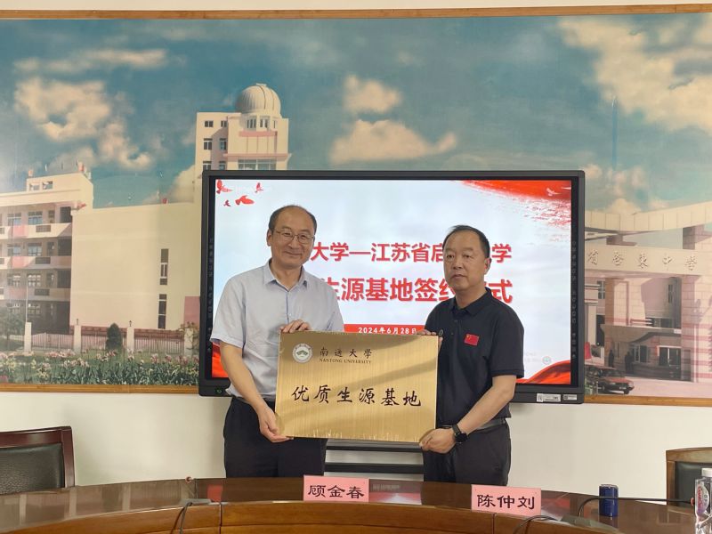 6月28日上午,我院与江苏省启东中学举行优质生源基地签约授牌仪式。365英国上市公司在线院长顾金春代表学校向江苏省启东中学授牌,365英国上市公司在线党委书记陈燕,江苏省启东中学校长陈仲刘代表双方签署《优质生源基地建设协议书》。
