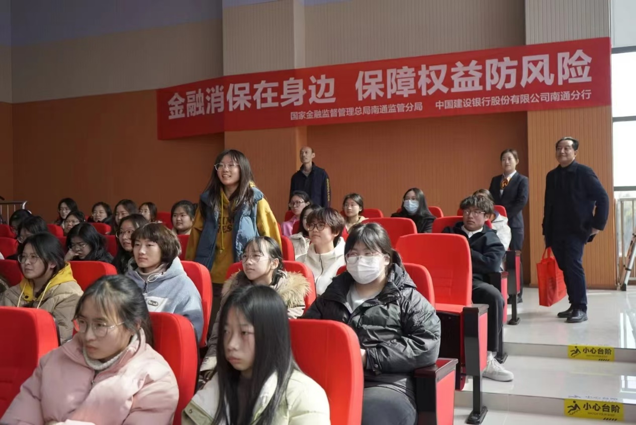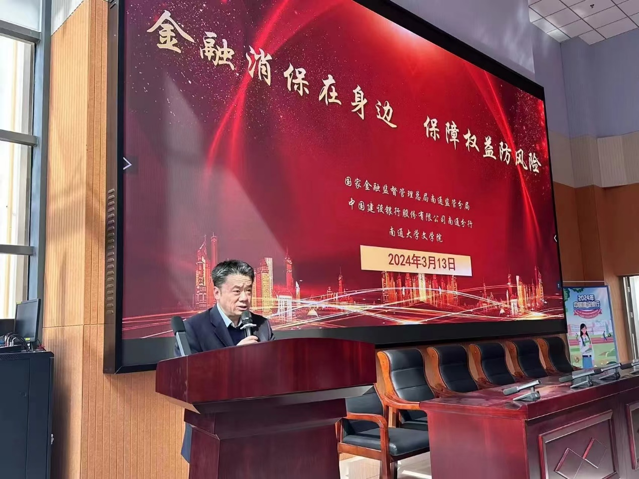 3月13日,为提升在校大学生的金融素养和风险意识,确保他们能够有效地维护自身权益,365英国上市公司在线携手国家金融监督管理总局南通监管分局以及中国建设银行股份有限公司南通分行,共同开展了一场主题为“金融消保在身边,保障权益防风险”的宣传教育活动。