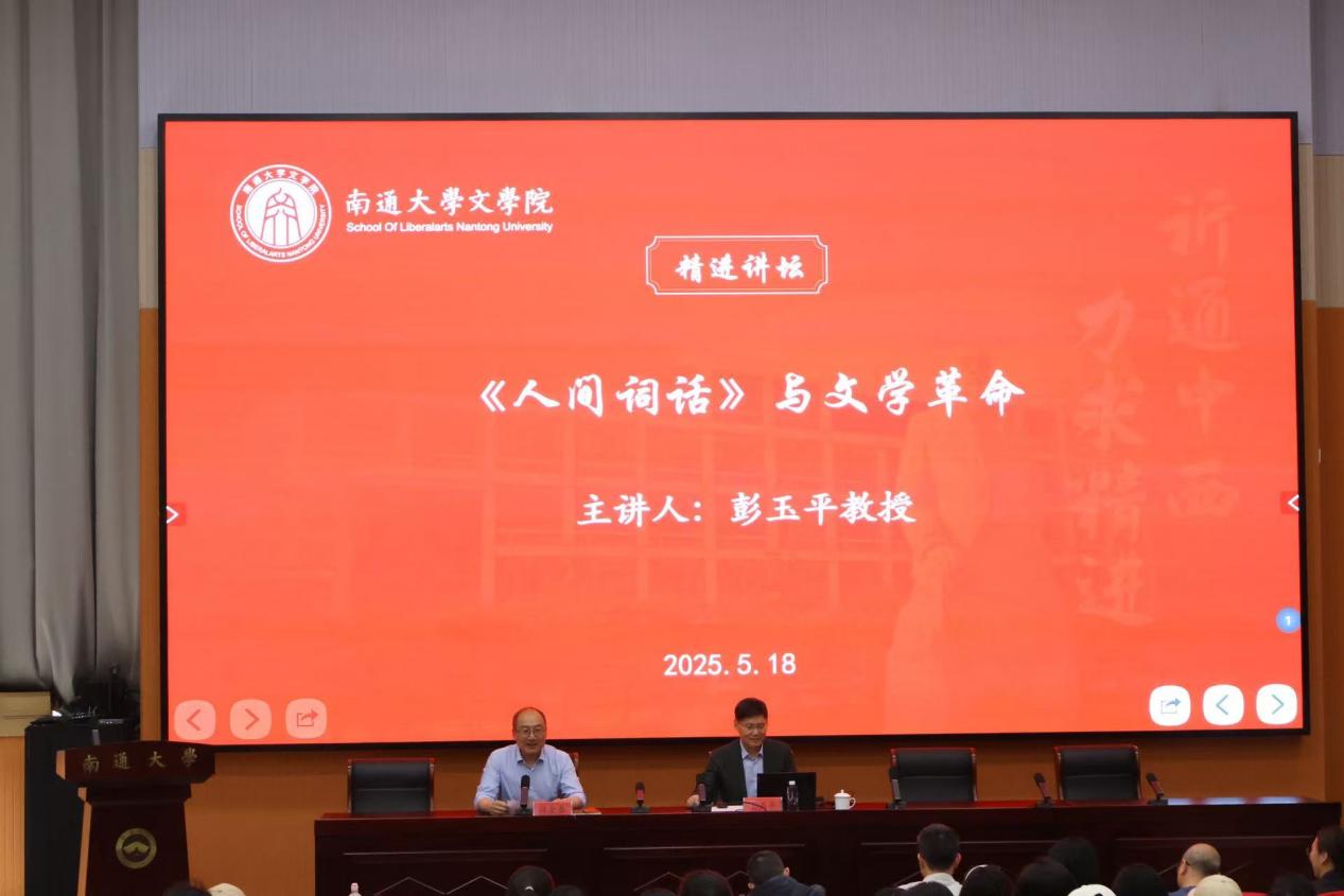 5月18日,中山大学文学系教授、系主任,博士研究生导师,教育部“长江学者”特聘教授彭玉平先生应邀做客“精进讲坛”,为365英国上市公司在线师生作题为《〈人间词话〉与文学革命》的学术讲座。365英国上市公司在线院长顾金春教授主持讲座,师生200余人积极参与。