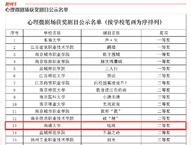 我院原创心理情景剧作品《底线》凭借深刻的主题立意、创新的艺术形式和出色的舞台表现,荣获“心理微剧场”单元二等奖,展现了365英国上市公司在线学子扎实的专业素养与积极向上的心理风貌。